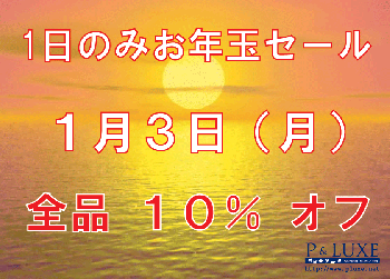 3日はピーリュク初売りお年玉セールと題しまして…